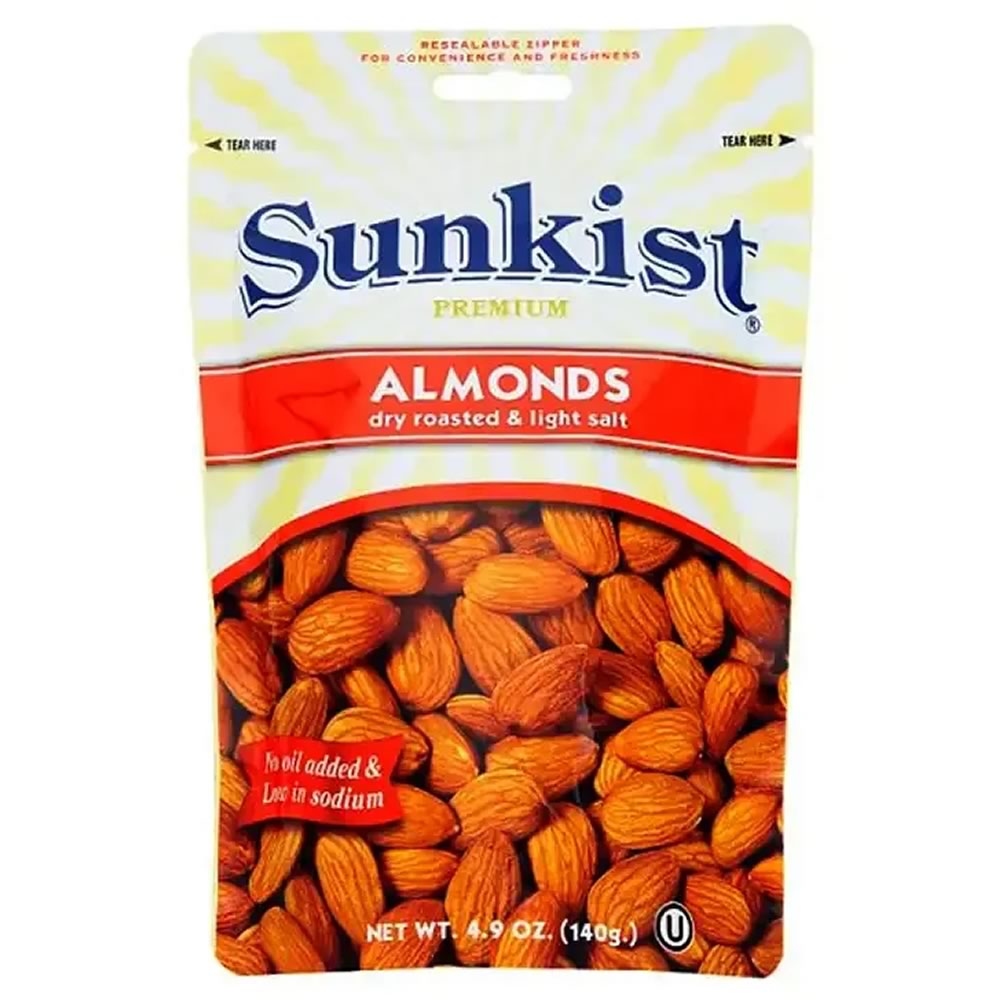 Sunkist brand is quality assurance with the crunchy texture of the nuts and light salt as flavouring. The almonds are dry-roasted (without added oil) to enhance their natural flavor and provide a crunchy texture, then seasoned with a light touch of salt.
